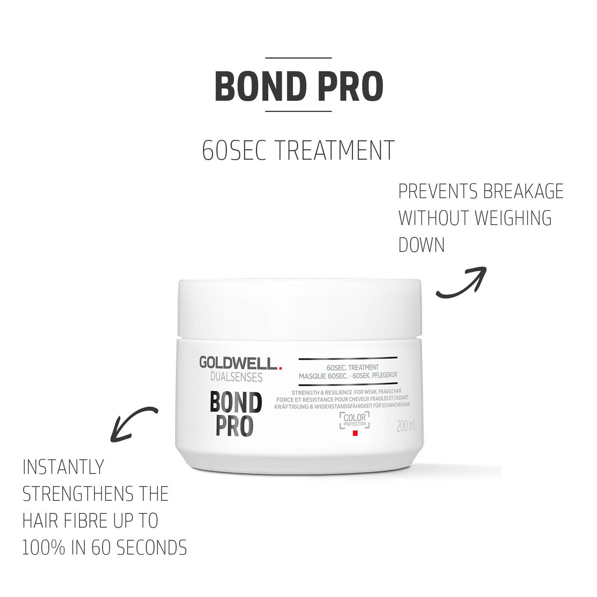 Goldwell Dualsenses Bond Pro 60 Second Treatment 200ml is a retail line that strengthens weak or fragile hair, whether from everyday wear and tear or from damage caused by mechanical and chemical stresses.