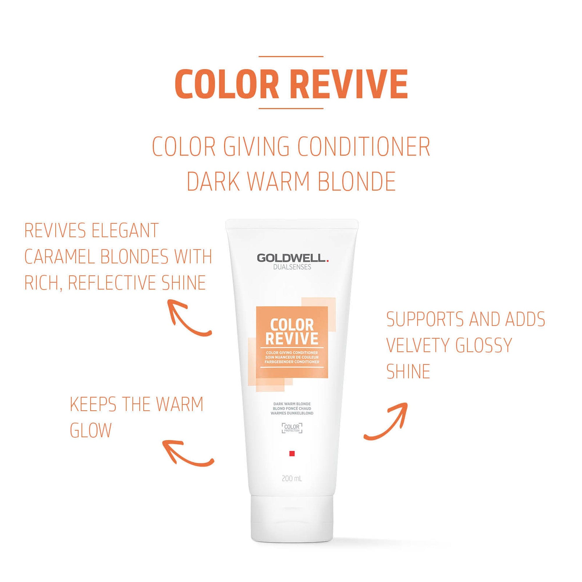 Goldwell Dualsenses Color Revive Conditioner – Dark Warm Blonde 200ml is a color-giving conditioner that refreshes or intensifies salon color in-between visits while perfectly conditioning the hair.