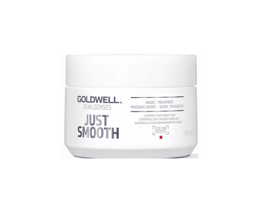 Goldwell Dualsenses Just Smooth 60 Second Treatment 200ml provides instant regeneration for unruly hair, leaving it manageable and frizz-free in just 60 seconds.