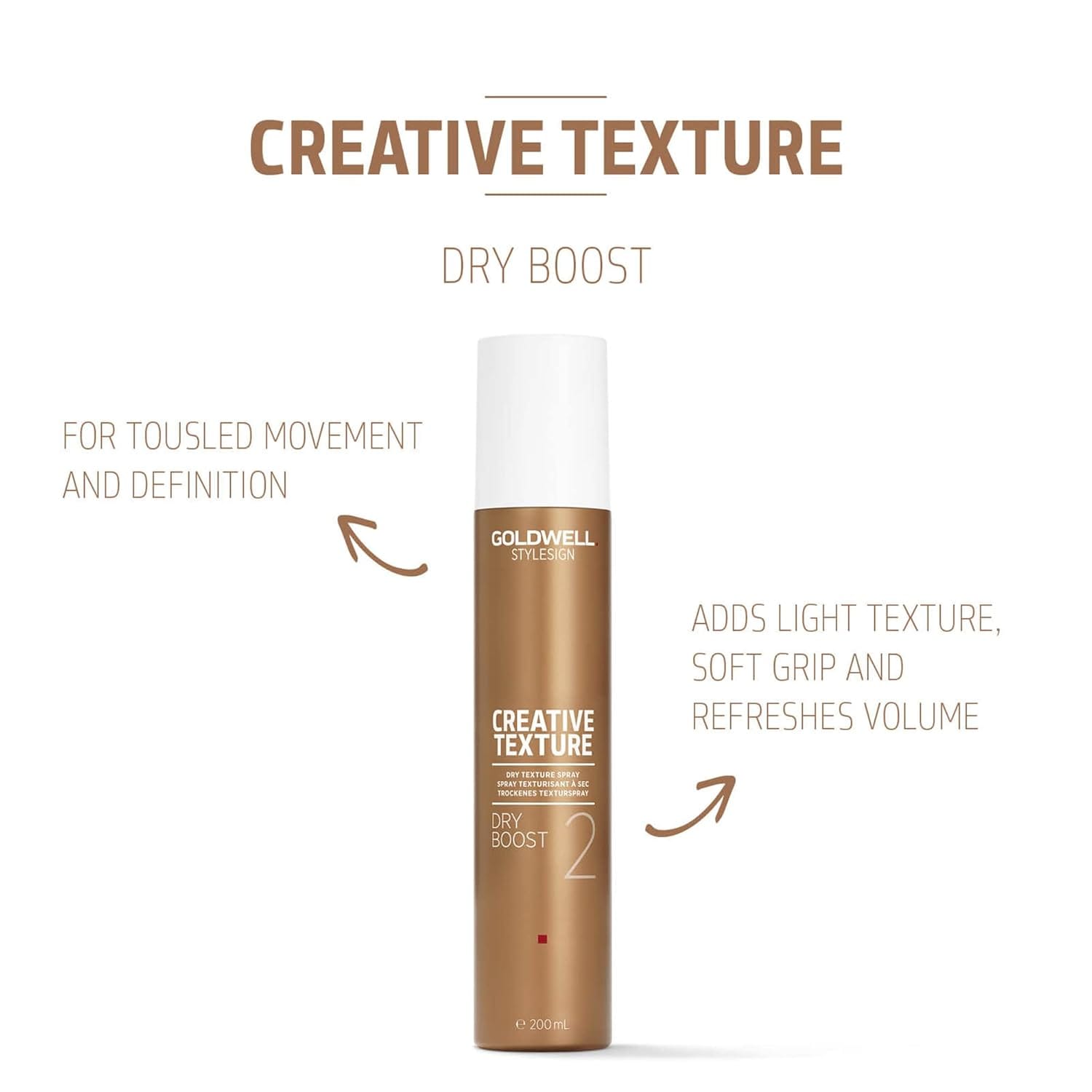 Goldwell StyleSign Creative Texture Dry Boost adds volume & texture with a lightweight formula for all hair types.