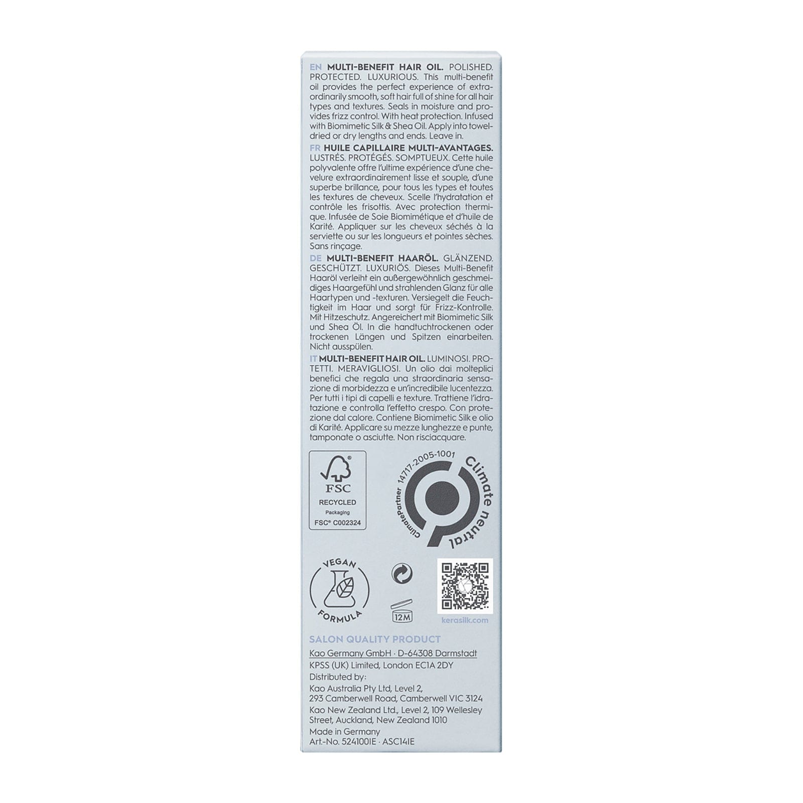 Kerasilk Multi-Benefit Oil 50ml: Nourishes, controls frizz, protects from heat, adds shine. Ideal for all hair types.