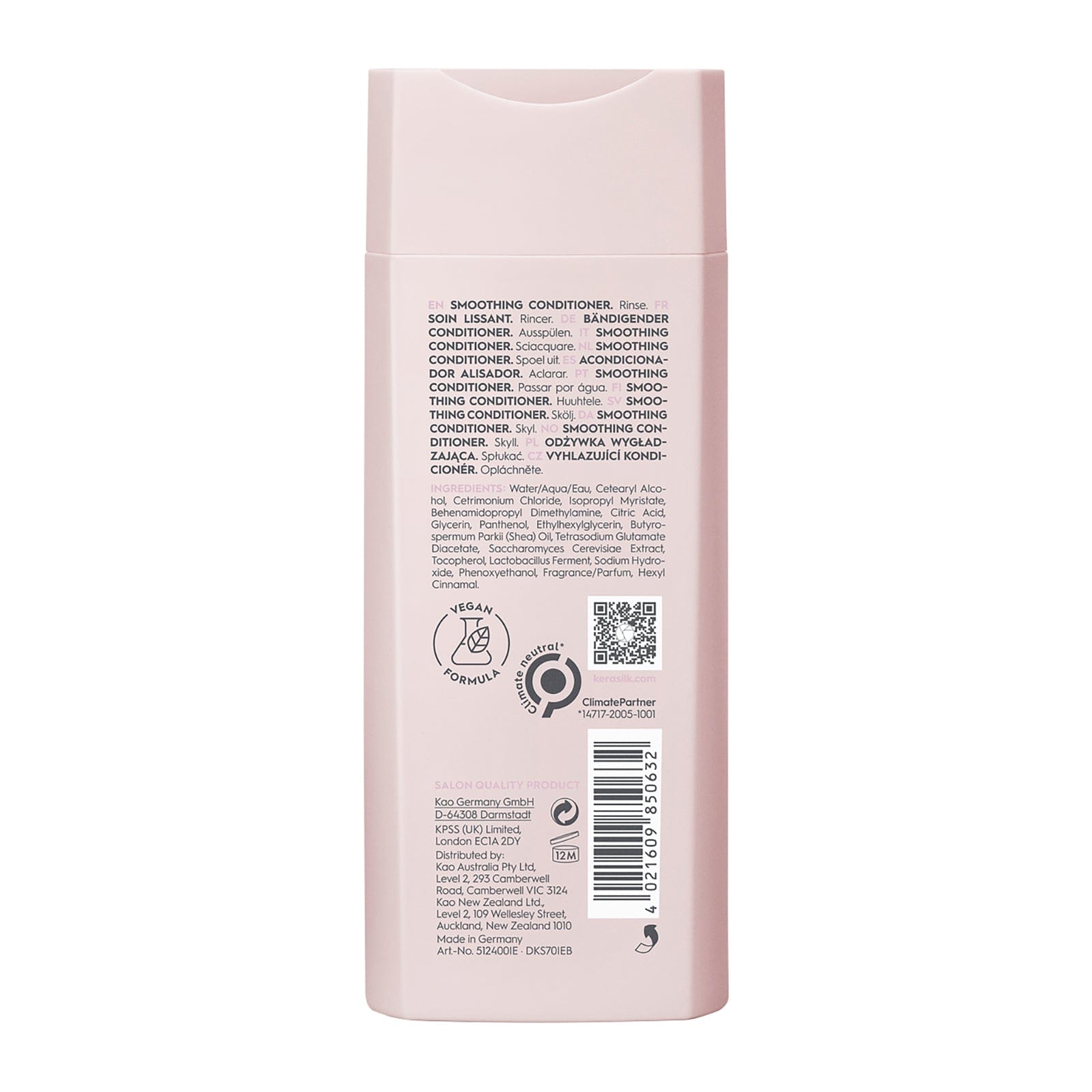 Luxurious smoothing conditioner tames frizz, provides intense hydration, detangles, offers heat protection, and gives long-lasting shine. Ideal for all hair types, especially those prone to frizz. Helps achieve a polished and sophisticated look.