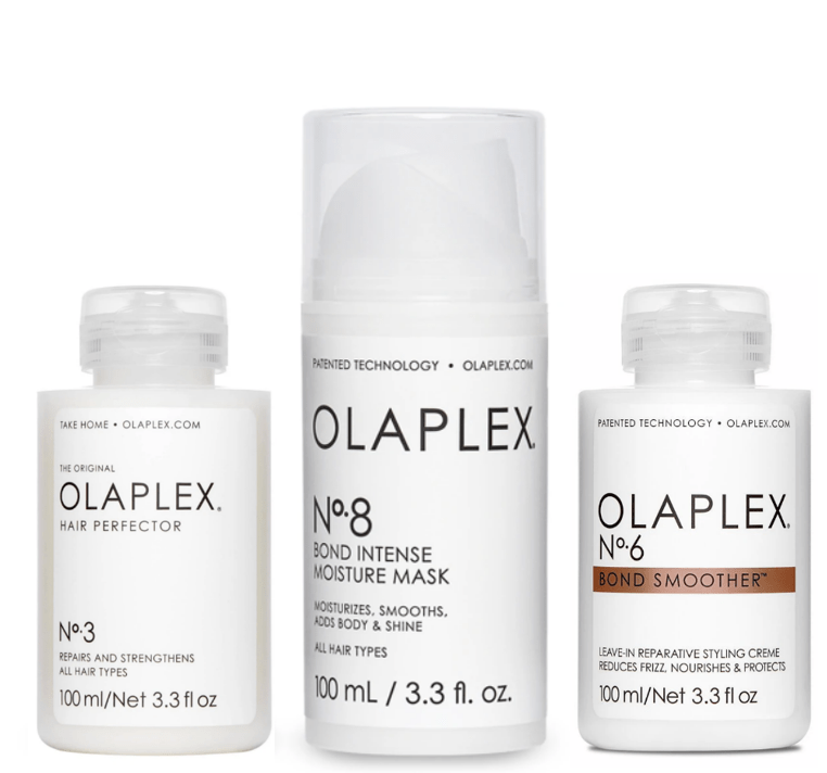The Olaplex No.3 + No.6 + No.8 Bundle is a set of three professional haircare treatments that work together to repair and strengthen damaged hair, improve its appearance and texture, and provide intense moisture.