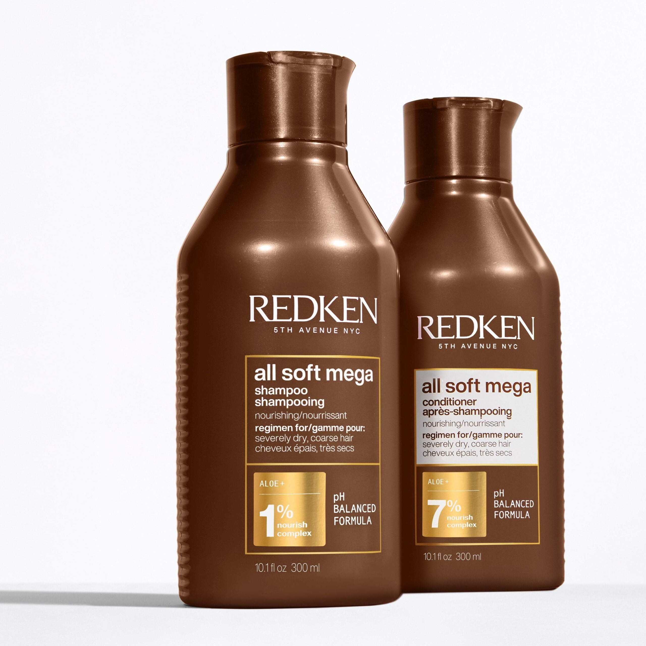 Redken All Soft Mega Shampoo nourishes and hydrates dry hair, infused with Aloe Vera for ultimate moisture. Perfect for medium to coarse hair types.