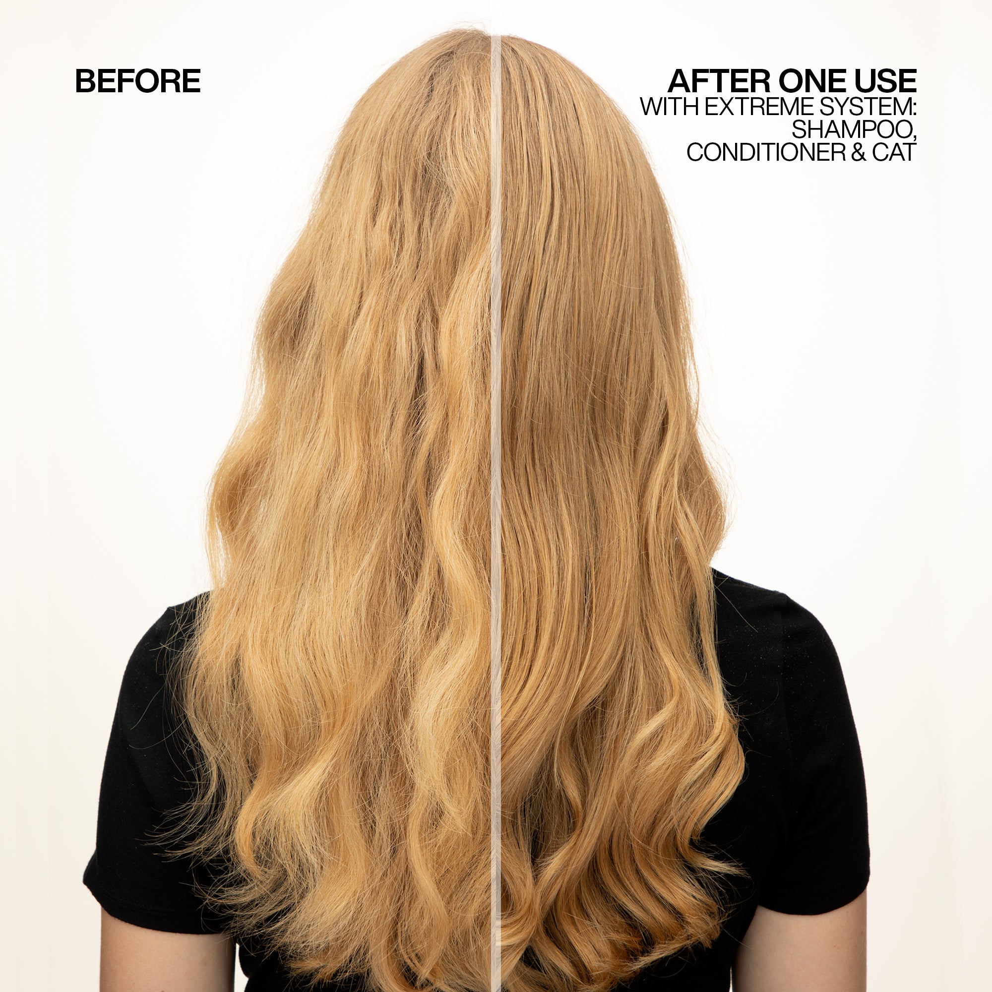 Apply a small amount of Redken Extreme Conditioner to your hair, focusing on the ends.